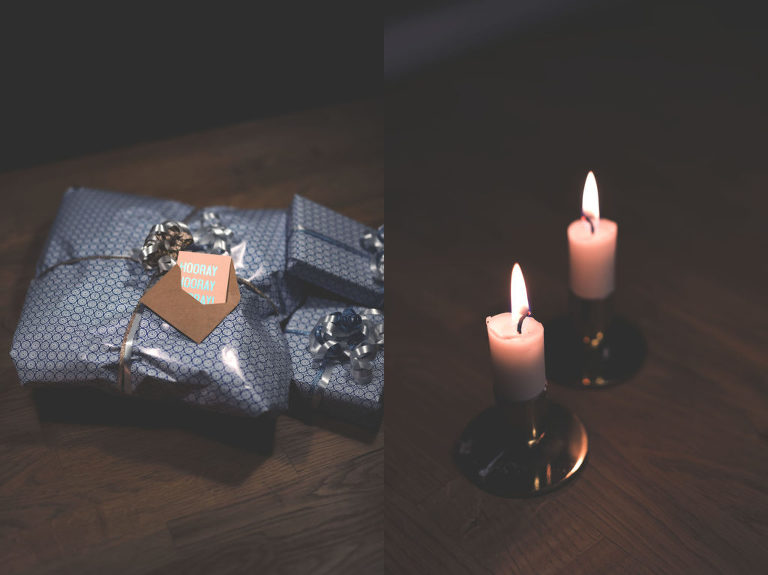 Att slå in paket tycker jag är väldigt roligt och jag köper ofta hem nya snören, papper och annat roligt man kan ha till inslagningarna :-) Just detta år är det extra mycket som ska firas och först ut är min blivande man – Kristoffer fyller 29 år idag och tyvärr har han jobbat hela dagen så han kommer hem när jag gått och lagt mig. Men det ger ju bara mer tid för att fixa och trixa med hans paket :-) I år blev det ett blåmönstrat papper (jag är svag för blåmönstrat överlag, oavsett vad det gäller) ihop med glittriga och vita band! Snygg kombo och det gör sig bra på bild ;-) Det fick även bli lite mörkare redigering på de här bilderna – det jag har gjort är att jag lekt med exponeringskurvor och lagt på ett blåare filter, som jag sedan släppt igenom med effekten mjukt ljus i Photoshop :-)