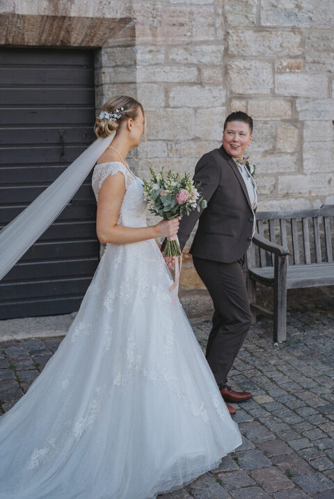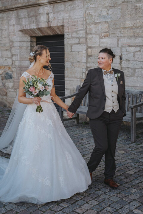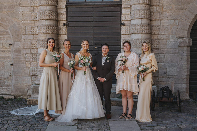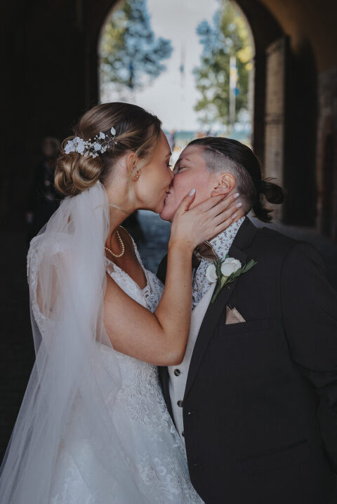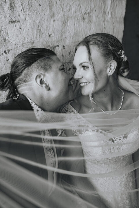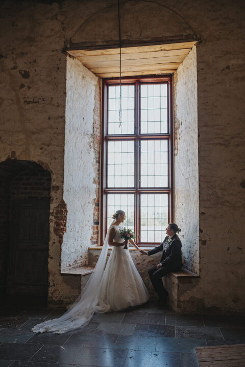 Uppvuxna i samma kvarter, knappt hundra meter i från varandra – och så tog det ändå till vuxen ålder innan de hittade varann! Men tänk så bra det blev! Fina Linn och Mikaela gifte sig i augusti på vackra Vadstena Slott.