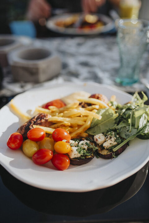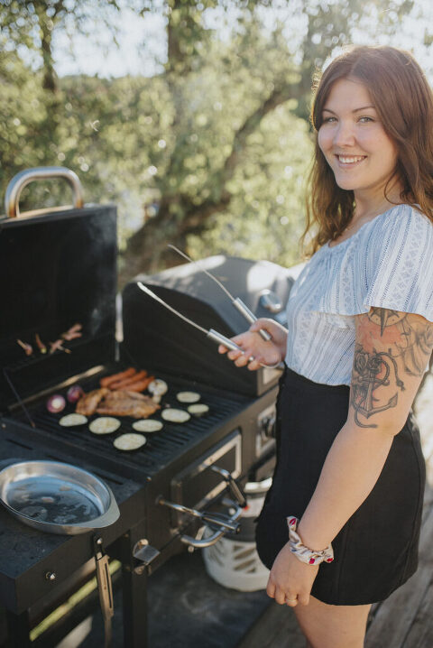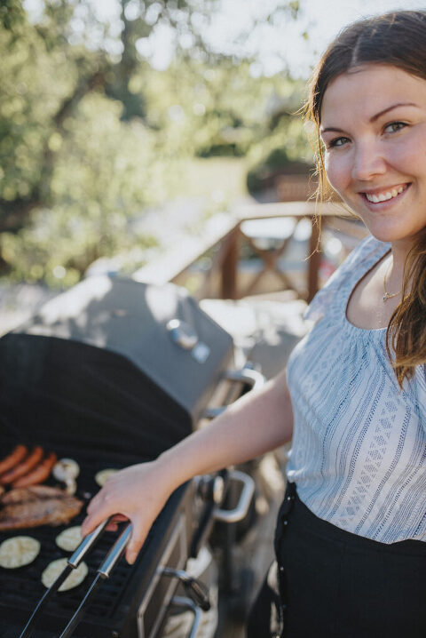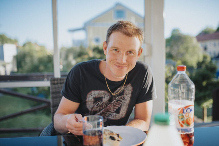 Det blir många såna här kvällar på somrarna, grillen är tänd, solen värmer så man kan sitta ute fram tills småtimmarna. Så jäkla gött! Här prövade vi att grilla aubergine penslad med olivolja och salt, som vi sedan slängde på färska örter och färskost på – helt okej tyckte jag, Toffe var inte lika imponerad.