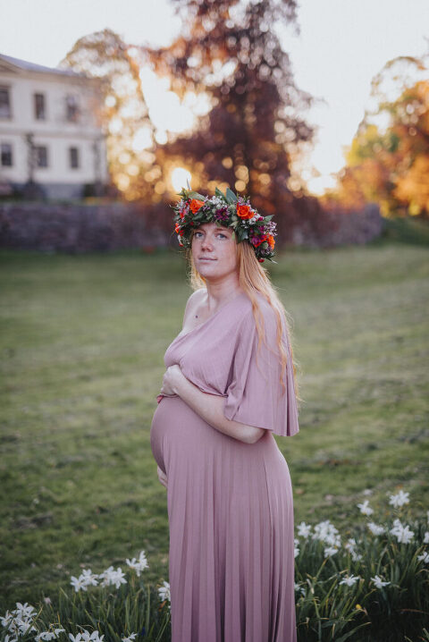 Titta så himla fint det blev på Carolines utomhusfotografering, tidigare tog vi bilder i studion innan magen hunnit bli superstor och innan hon hunnit samla på sig vätska inför förlossningen – då blir man lite mer svullen i leder och känner sig ofta lite otympligare. Så vi delade upp det i två omgångar – en studiofotografering och en utomhusfotografering! Hon beställde genom mig även en krans, och jag tycker att det gör STOR skillnad när man tillför små detaljer, som smycken och kransar. Det blir lite extra lyxigt och ger en extra touch i bilden. Ni kan dessutom låna samtliga klänningar på bilderna av mig, de finns i studion att prova ut och se vilken du känner passar dig bäst :-)