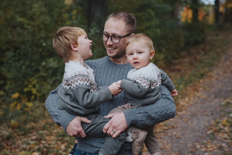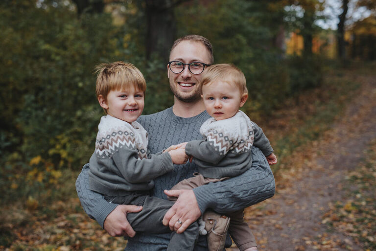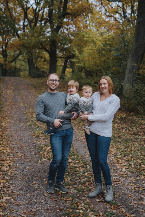 En familjefotografering i Motala, mitt i ruskigaste oktober – tänk så fint det kan bli med stickade tröjor och mysiga familjer!