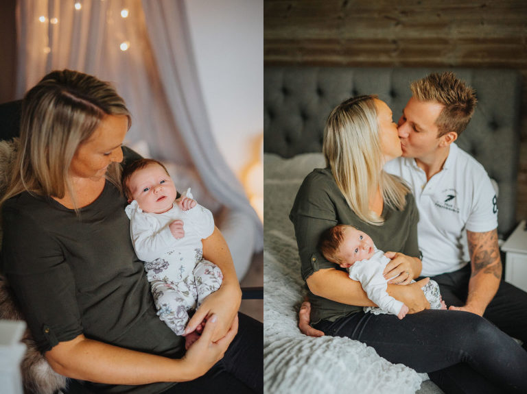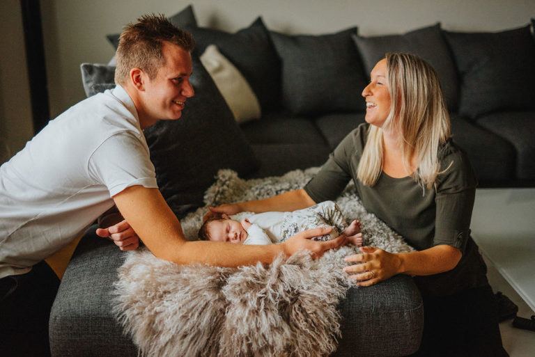De dagar jag inte är fotograf i Motala så får man ju passa på att vara fotograf i Ödeshög och på andra kommuner runt om i Sverige :-D För snart en månad sedan så föddes alltså den här lilla tösen – Penny, och Johanna och Christoffer blev för allra första gången föräldrar. Mamma och pappa, hur jäkla stort är inte det? För att föreviga det hela satte jag mig i bilen och åkte hem till dem, för det är så jag tror det blir allra bäst på bild. Att både föräldrar och lilla liten kan slappna av, känna sig trygga och ha allting nära till hands i hemmet istället för att behöva packa ned allting och åka en bit för att bli fotograferade. Framför allt inte som alldeles nyblivna föräldrar :-)