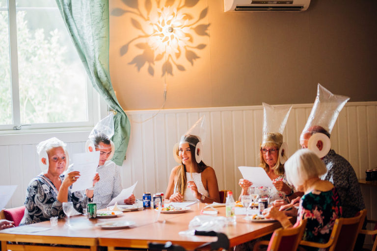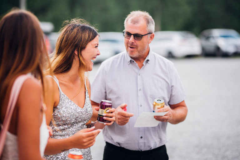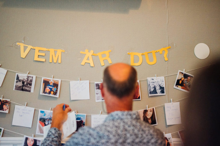 På fredag innan vårt bröllop hade vi bjudit in till middag, mingel och lite fest! Det är verkligen något jag kan rekommendera alla att göra, jösses så mysigt och roligt det var att få träffa alla gäster innan den stora dagen och att faktiskt få ännu mer tid med dem. Vi valde ju att ha vårt bröllop 95 mils enkel resa hemifrån, och då ville vi utnyttja varenda minut våra gäster var på plats. Det vi gjorde för att lätta upp stämningen och få folk att prata med varandra var att vi hade ett bröllopsbingo som gick ut på att man skulle hitta personer som passade in på påståendet som stod i rutan och skriva den personens namn – vilket var hellyckat! Det andra var att vi hade skrivit ut allas (som hade Facebook) profilbilder och skrivit något som passade in på dem på baksidan – så de skulle få hitta sig själva, vilket inte alltid var så himla lätt ;-)