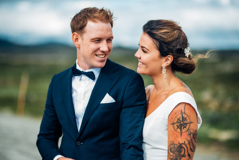 Då var det dags för lite bröllopssnack igen! :-) (Tidigare delar är länkade längst ned och som tidigare är bilderna tagna av Martina Lundborg). Vi fotograferade våra porträtt uppe på Stekenjokk, som är ett kalfjäll och som faktiskt bara är öppet ett par månader om året. När jag säger öppet så menar jag möjligt att ta sig till med bil – det är nämligen så förbaskat mycket snö här på vinterhalvåret (oktober-maj) att vägen helt enkelt inte går att köra på! Om ni googlar Stekenjokk – Vildmarksvägen så får ni upp en hel drös med häftiga bilder och videos på hur det ser ut när de plogar vägen på all snö på vårkanten!