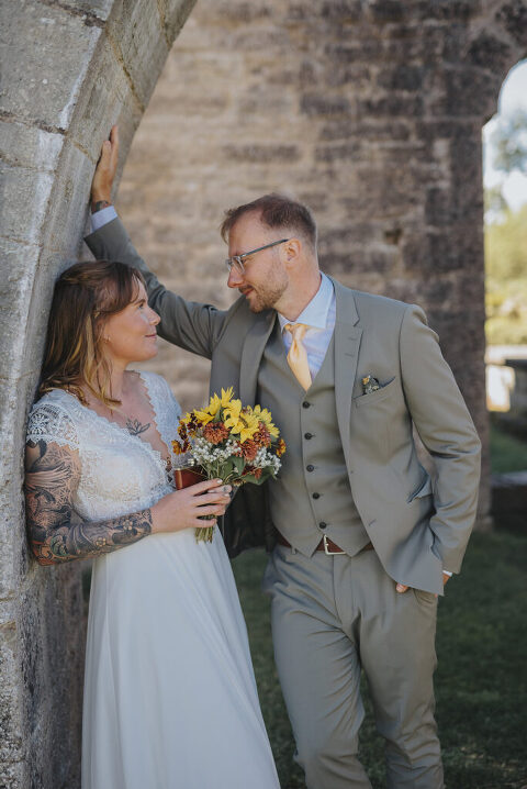 När man fotograferar många gånger på samma ställe (och det har ju blivit ett gäng fotograferingar i fantastiska Alvastra klosterruin genom åren) då måste man se till att man inte gaggar till sig och bara kör säkra kort – man behöver utmana sig. Så när årets tredje fotografering i Alvastra ägde rum så var det med Caisa och Love! Ja, och så tredje hjulet – fickpluntan såklart!
