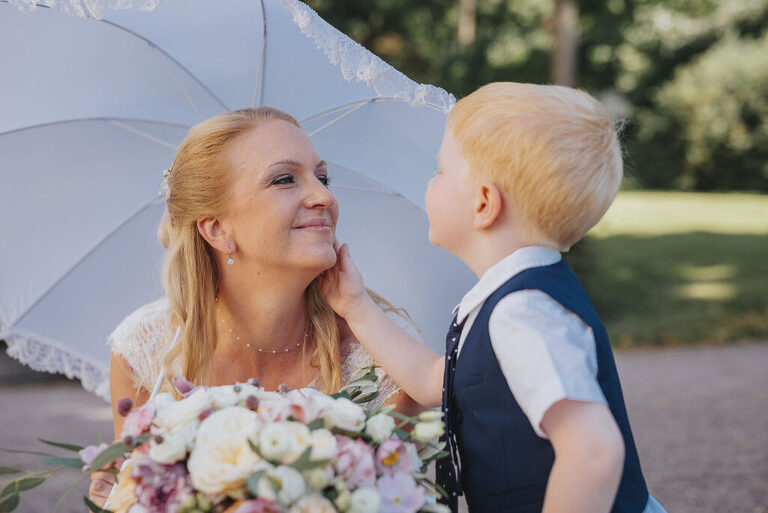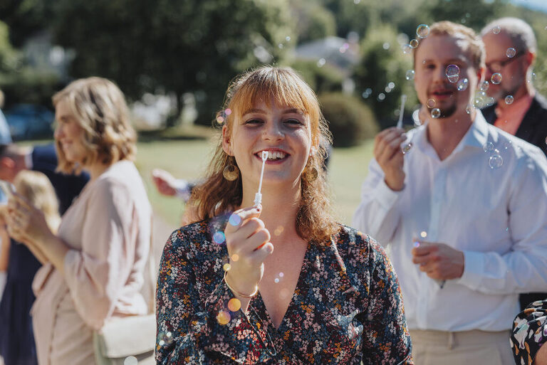 Utanför kyrkan väntade det både puffat ris, konfetti och såpbubblor – varför välja en när du kan välja allt! Älskar när man går all in. Och när fasen ska man göra det, om inte på ens bröllop?