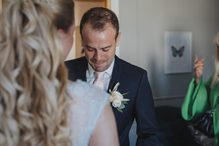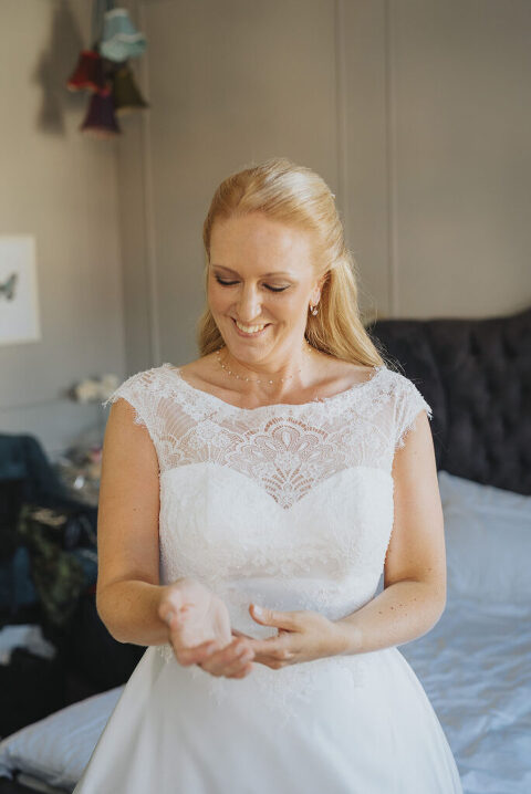 När smink, smycken, skor och klänning var på plats så var det dags att röra sig mot Gränna kyrka. En kyrka som har ett fantastiskt ljusinsläpp och som går i ljusa färger – en fotografs bästa vän ;-) Men först – en snabb first look.